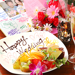 大切な方のお誕生日・記念日などのサプライズ演出なら当店におまかせください! 事前のご相談で、主役の方に【①お店の入口にあるウェルカムボードの手描きデコレーション】【②好きなキャラクターやメッセージを描いたオリジナルデザートプレート】【③記念写真撮影】【④色紙】をサービス♪ お客様のかけがえのない特別な日をスタッフ一同お手伝いいたします!