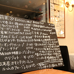 仕入れる食材や季節によって変わる黒板メニューをいつも楽しみにしています。
