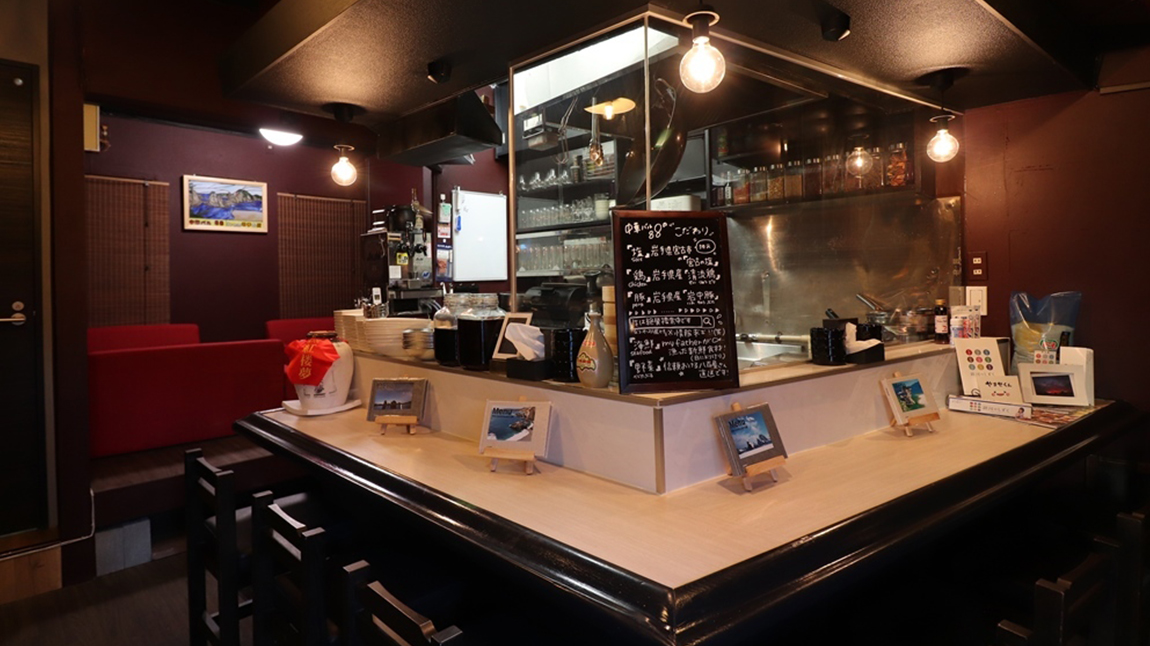 亀有駅より徒歩5分。落ち着いた茶色と赤色を基調とした店内は、家族連れでもお楽しみいただけるアットホームな空間となっております。 全16席のお席には、小上がりのソファ席もご用意。ゆったり落ち着いて食事をお楽しみください。