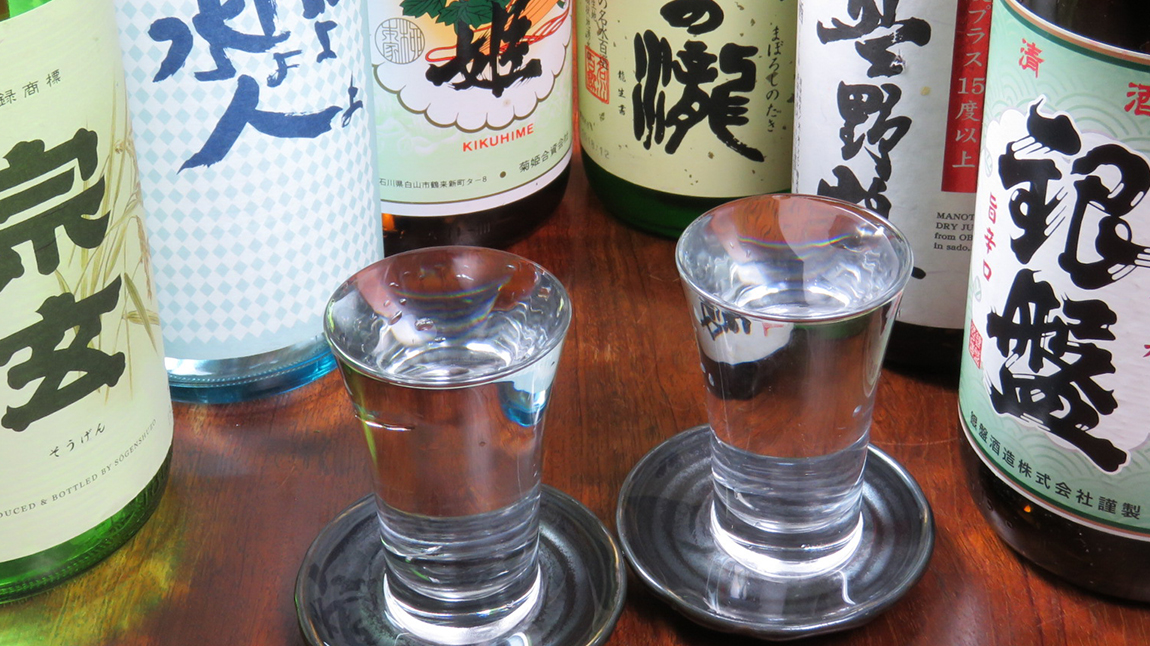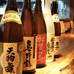 石川県『福正宗』『加賀鳶』『宗玄』、富山県『銀艦』『幻の瀧』、新潟県『真野鶴』、長野県『寒竹』など、全国各地より当店の料理と相性のよい日本酒を厳選し仕入れています。 メニューに記載されていない希少なもの・季節限定のものもあるため、その時々でしか味わえない銘柄との出逢いをお愉しみください。 何を飲んだらいいか迷ったときはスタッフにご相談いただければ、お好みや料理に合うものを提案させていただきます。