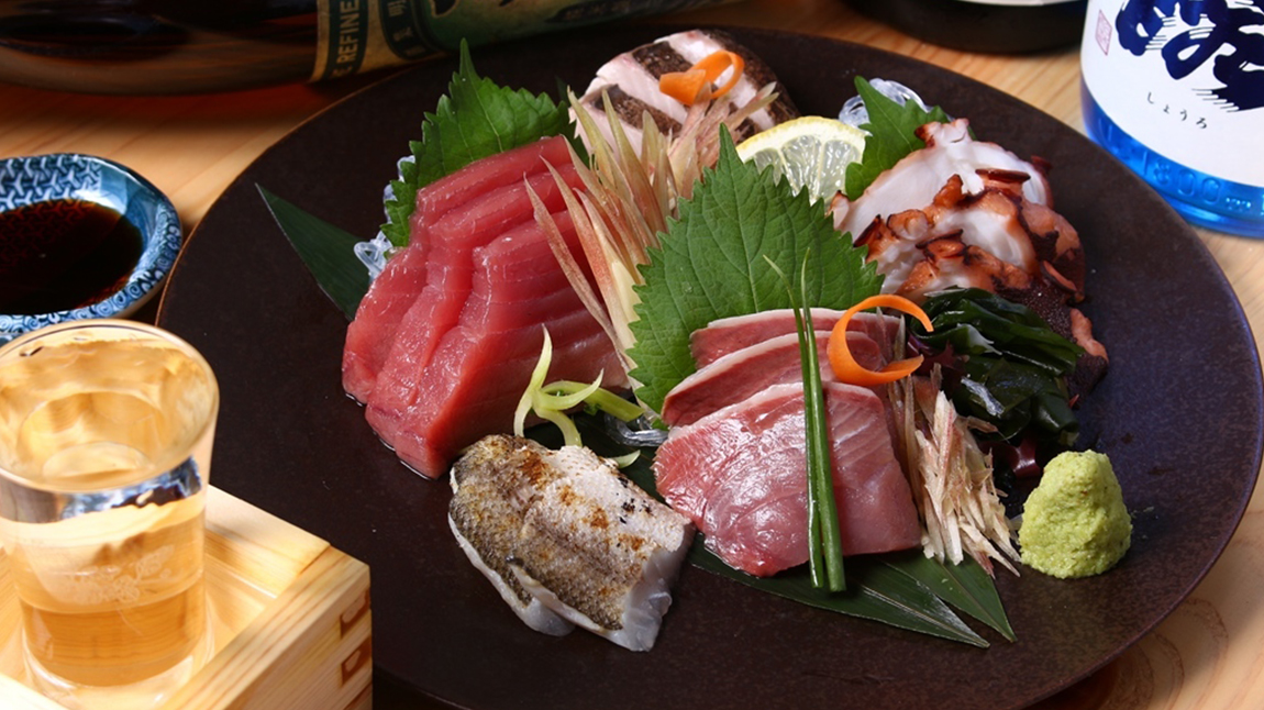 ちょっとしたつまみや、海鮮料理、お肉など豊富な一品料理を味わえます。日本酒に合わせてお召し上がりいただきたいのは当店自慢のお刺身で、マグロやタコ、カツオなど旬の魚介を厳選してご提供!その日のオススメが食べたいという方は、「鮮魚5種盛」をぜひお試しください。必ずご満足いただける逸品です!