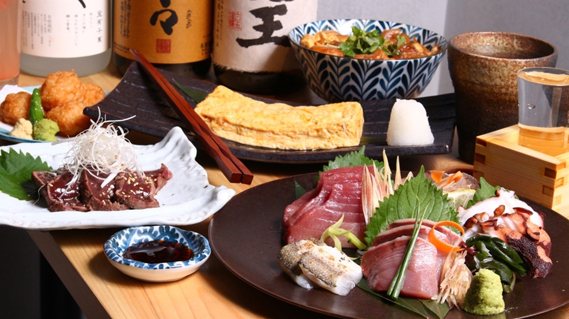 親しみのあるものから珍しいものまで厳選した食材を使用し、日本の季節を表現した料理でおもてなし。 鮮度抜群の海の幸は『刺身』はもちろん『天ぷら』や『南蛮漬』など多彩なメニューでご用意しております。 甘口・辛口と月替わりで常時15種類以上取り揃えている、自慢のラインナップの日本酒も合わせてぜひお愉しみください。
