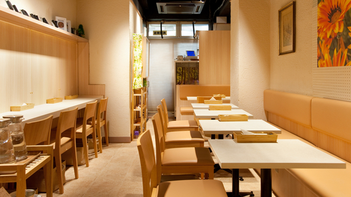 大通りから一本入った静かな路地のビル二階にある当店。白を基調とした明るく居心地のいい店内は、カウンター席、テーブル席の全18席。こじんまりとしたアットホームな空間で、お客様をおもてなしします。 6名様からと少人数での貸し切りも可能ですので、女子会やママ会、ちょっとしたパーティなどにも気軽にご利用いただけます。