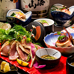 和の情緒溢れる店内は、2名様~50名様までご利用可能な完全個室を多数ご用意。 自慢の厳選食材を使った創作和食が味わえる宴会コースは、 2時間飲み放題付2,999円~6,000円までとシーンや予算にあわせてお選びいただけます。