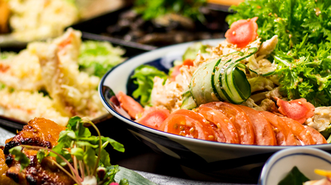 産地、鮮度にこだわった厳選食材! 銘柄地鶏、市場直送の鮮魚、旬の季節野菜などを使用した自慢の創作和食が目白押し!