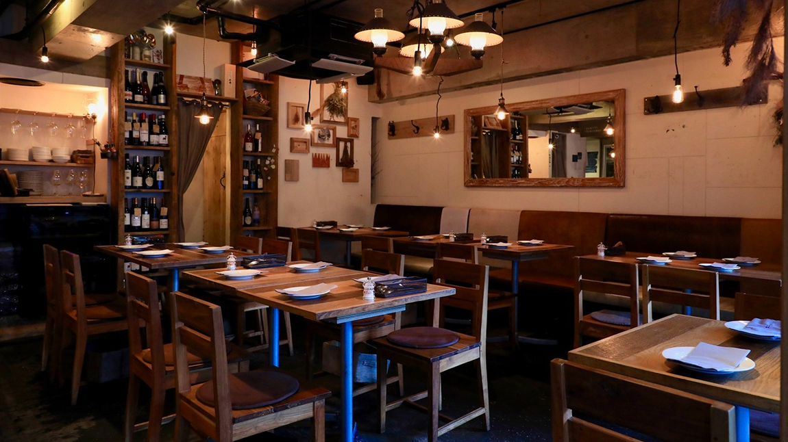 各地で大人気の【SARU】学芸大学店のテーマは「都会の中のロッジ」 こだわりの山の幸と厳選ワインでゆったりおくつろぎください。