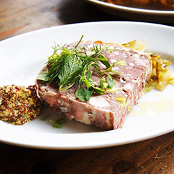 長野県安曇野市山中の放牧により育った肉質が良い豚を、ワインと合うように味付けし、オーブンでじっくりと焼き、仕上げにお客様の目の前で同産地の安曇野のリンゴの木のチップで瞬間燻製!芳醇な香りをまとわせご提供します。口に含んだときに広がる、柔らかく凝縮された旨味は絶品です。