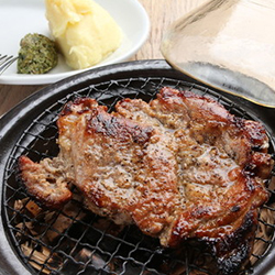 リンゴの木のチップで燻製することによってやさしい薫りと、余分な脂が落ちて凝縮された肉の旨みがぞんぶんに味わえる逸品に。 名物『瞬間燻製ステーキ』の豪快な見た目と最上級の味わいは必食のメニューです。