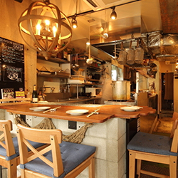 代々木上原の閑静な街並みに佇む、海を彷彿させる青と白を基調とした外観。店内はロープワークのオブジェなどで彩り、船上を思わせるような遊び心もプラス。 こだわり魚介の味をランクアップさせるオシャレな店内は大切な方と楽しいひとときを過ごすのにも◎♪