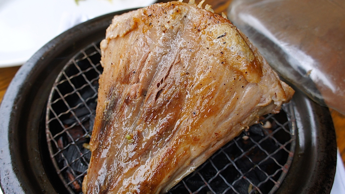 今回注文した「マグロの希少部位の豪快ロースト」(この日はマグロのカマでした)は、リンゴの木のチップで希少部位を瞬間スモークした、このお店の看板メニューとのこと。スモークされたマグロのカマは肉々しくありながらもやわらかくてジューシー!そこに燻製香が実にいい感じのアクセントになる。。。かなり美味しい!!そのまま一気に完食してしまいました。 『マグロの希少部位』は、カマ以外にも脳天・頬肉・アゴ・テールがあるらしい。また、行かなくては!ごちそうさまでした!!