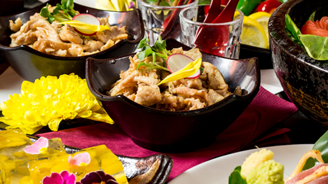 当店イチオシの若鶏の柚子胡椒鍋!産地直送の新鮮食材をふんだんに味わえる贅沢な逸品です! その他、朝獲れの鮮魚のお刺身や季節の野菜の天ぷらなど、四季折々のメニューを和の趣ある大人のプライベート個室で心ゆくまでお楽しみいただけます。